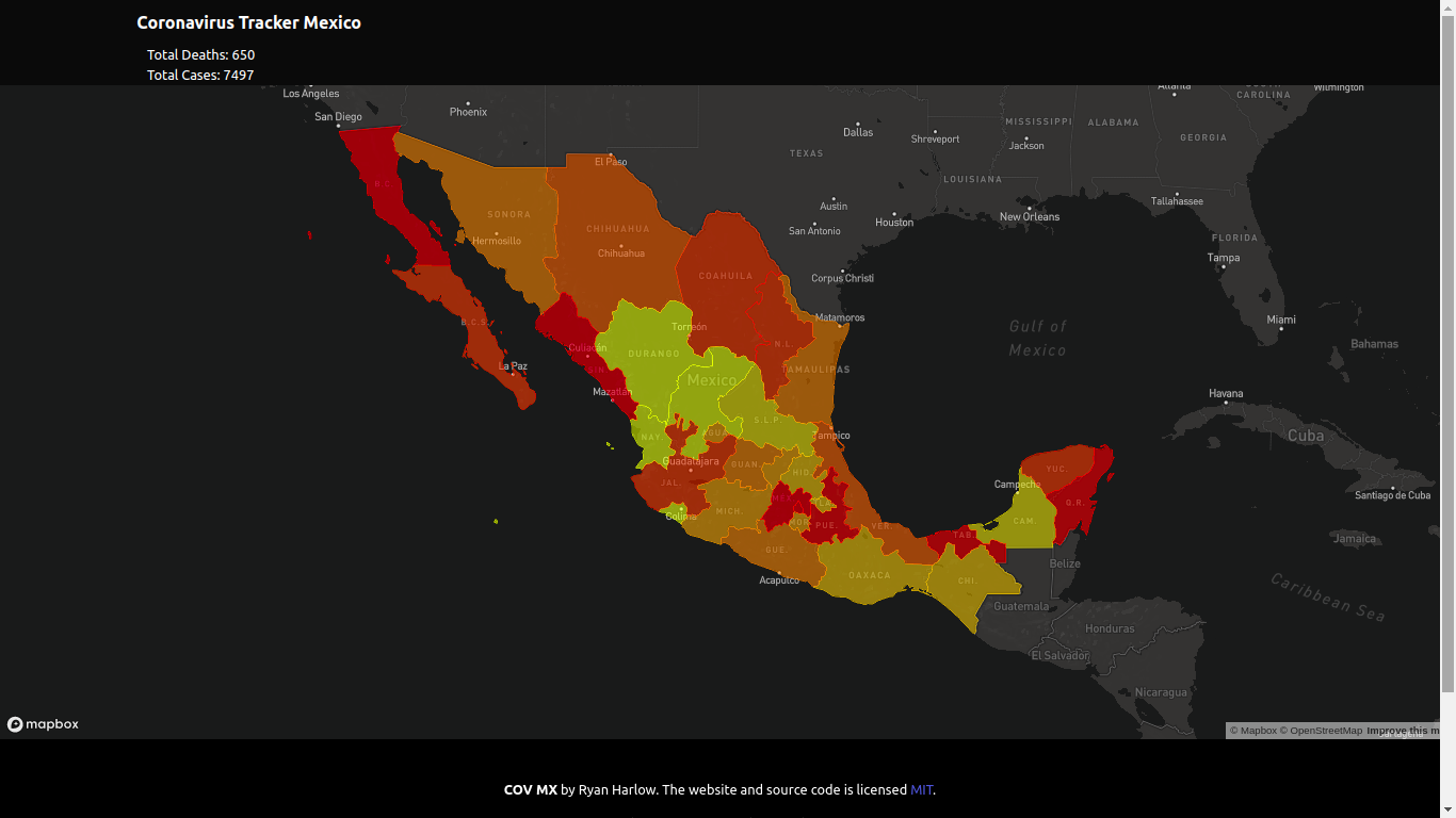 App provides a visualization of cases and deaths due to COVID-19 in the Mexican states using data provided by the Government. The backend API allows other developers to create applications based on the data.